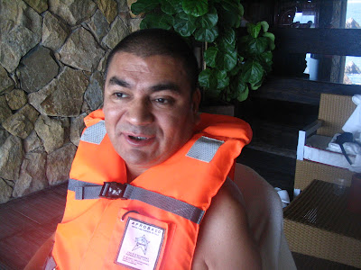 1.-Juan flotando de espaldas con ayuda de un chaleco flotador (se los recomiendo) con parte de sus rodillas en semiflexiòn fuera del agua .